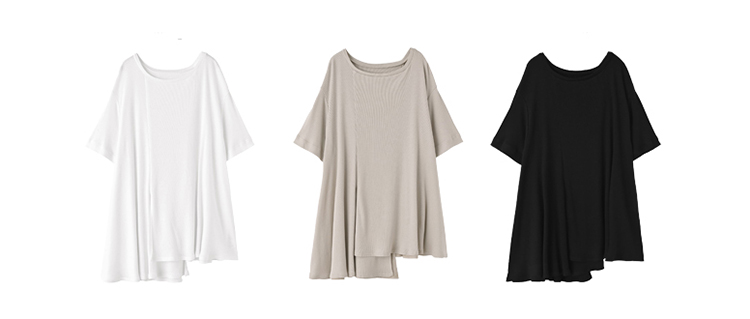 日本製ならではの縫製と生地質感が美しい、立体的な左右非対称デザインのカットソートップス。パンツ合わせにもピッタリなやや長めの丈感で、生地量たっぷりの裾周りが身体のラインをカバーします。