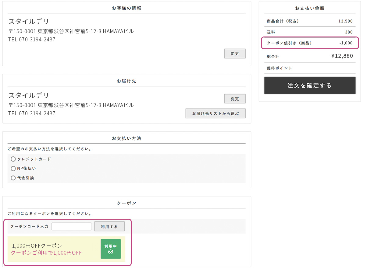 ※引き続きご利用いただけるクーポンに関しては、一度クーポンコードをご入力いただくと