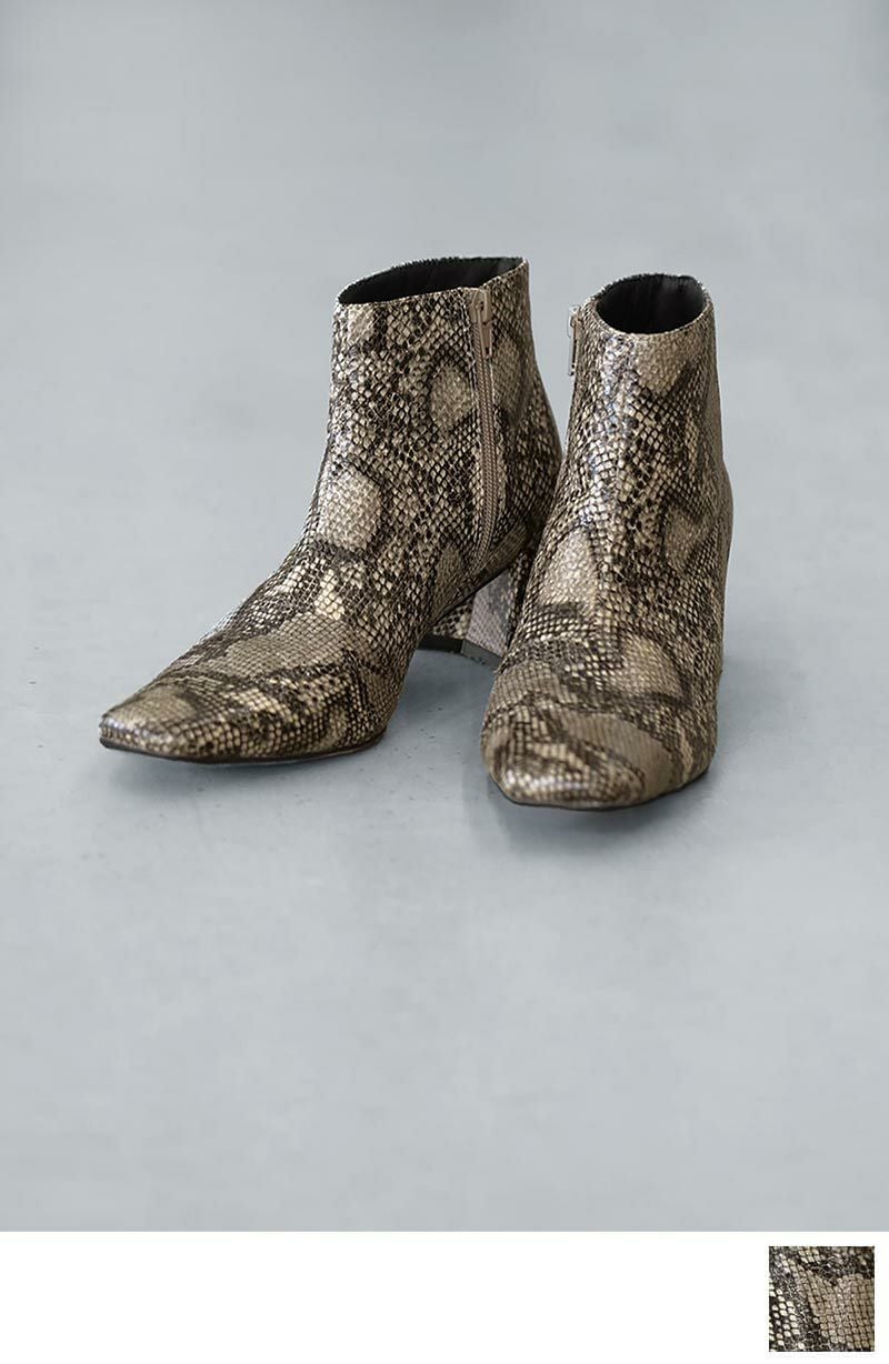 【OUTLET】ブロックヒールスクエアトゥショートブーツ