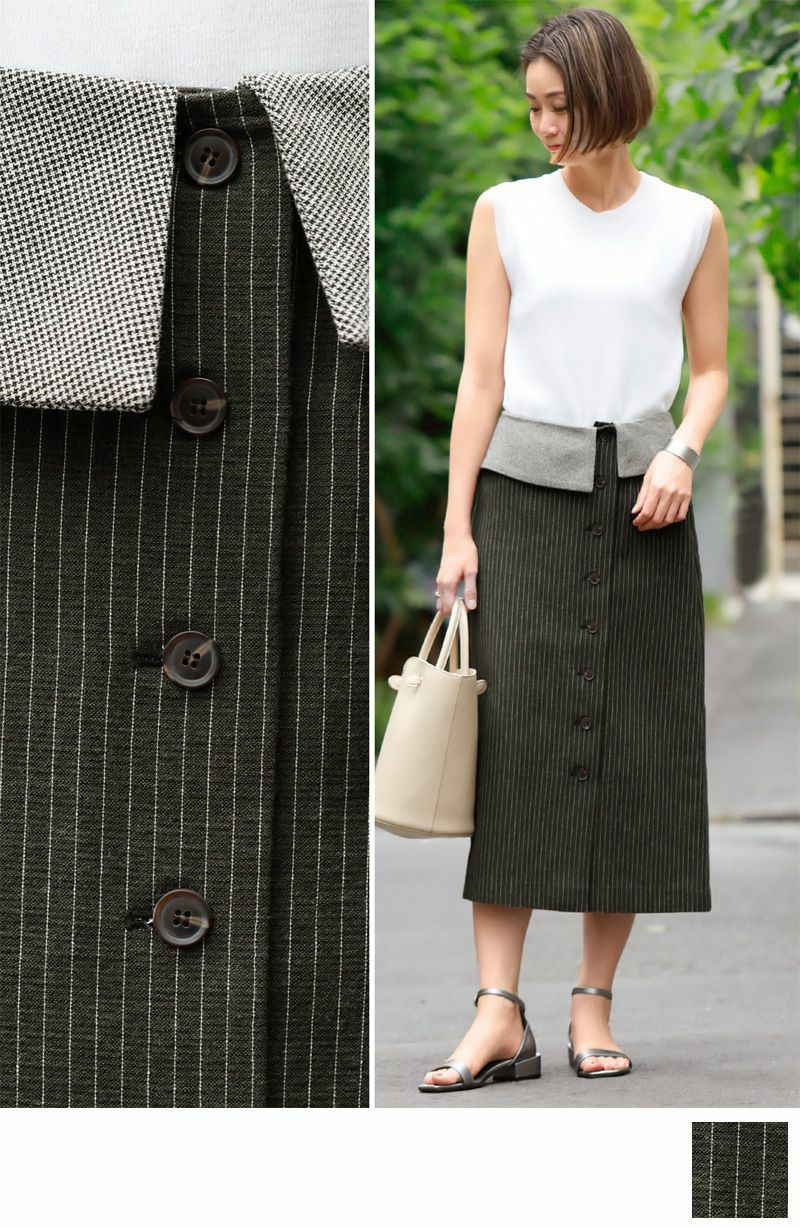 【OUTLET】柄切替ウエスト折り返しデザインスカート