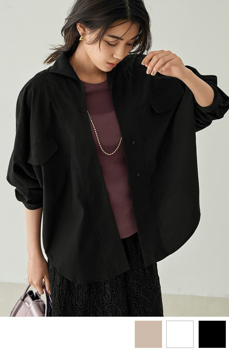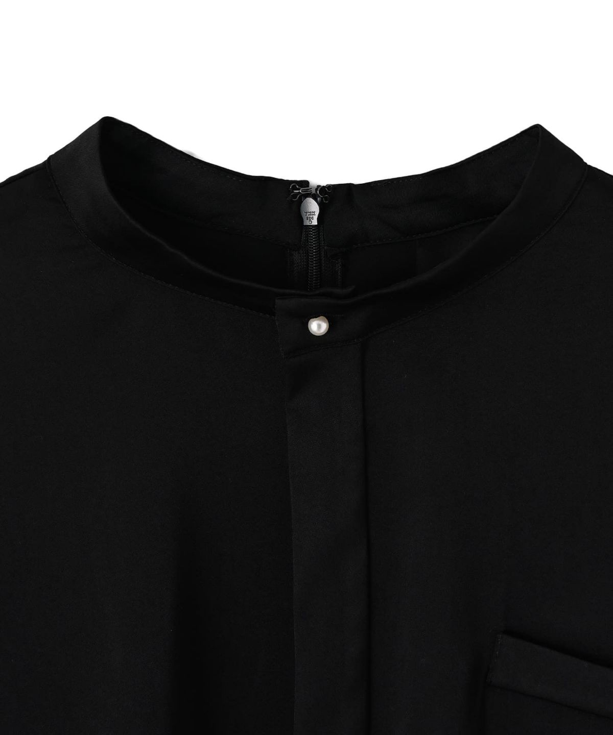 【BLK001】アシンメトリー切り替えシャツワンピース