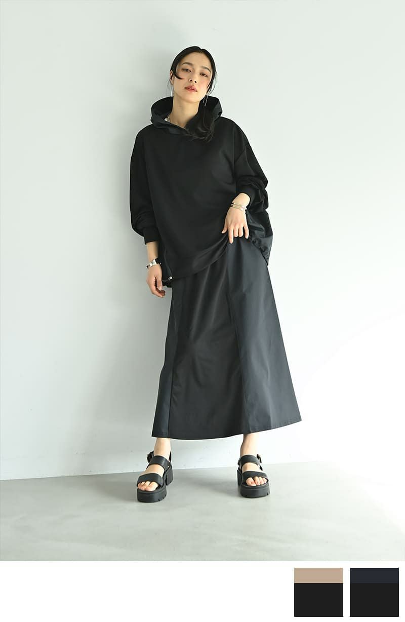 他の画像を見る 販売期間 2026/02/05 19:00 〜 セット販売PRICE [SET]【BLK001】異素材使いフーディーパーカー×スカート 通常価格 ¥ 17,600 のところ 通常価格 ¥ 15,000 税込