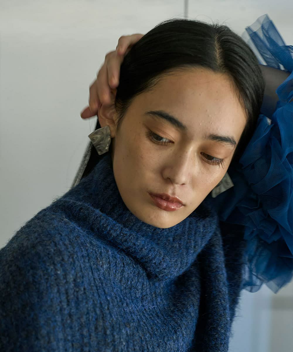 【MARJOUR】[Rokusyo]MOHAIR SHAGGY NECK SLIT CAPE