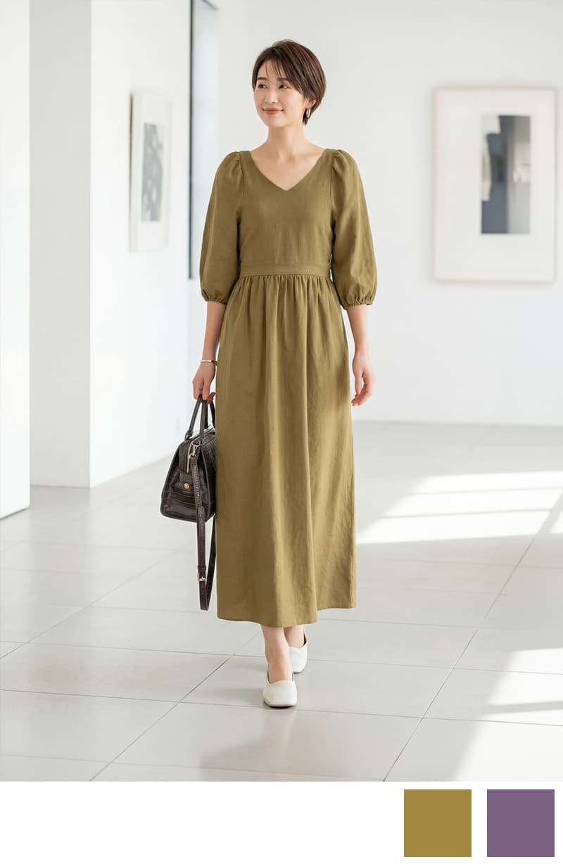【OUTLET】綿麻ボリュームスリーブワンピース