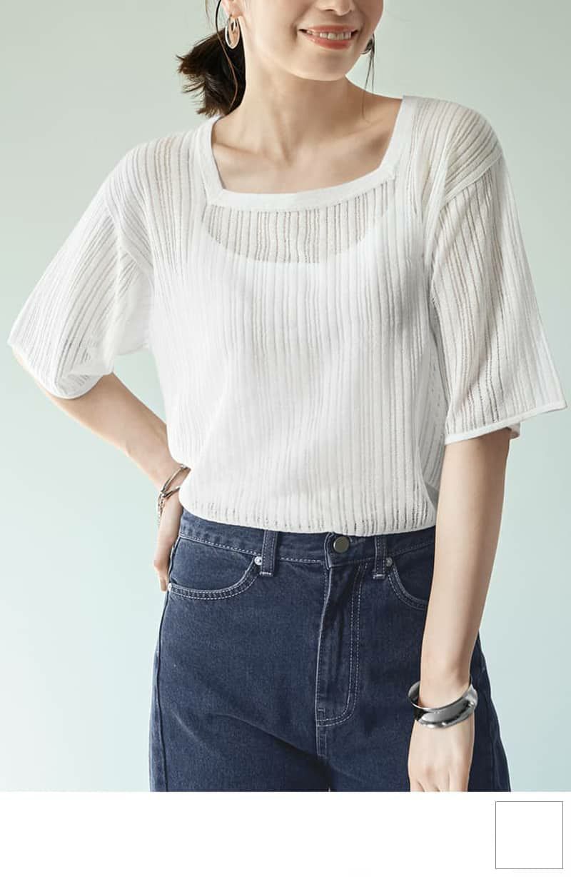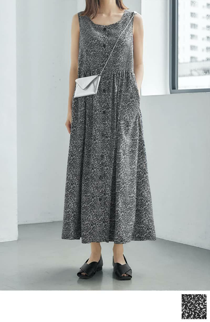 【OUTLET】【LUXE】プチリーフ柄スクエアネック風ワンピース